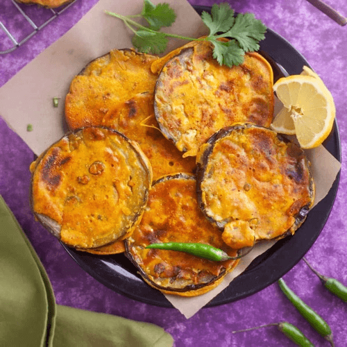 Potato, onion, eggplant, dipped in chickpea batter and fried in vegetable oil.