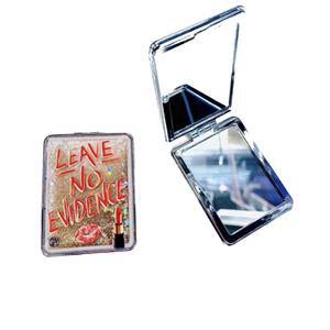 3" X 2" compact mirror with one regular and one magnifying mirror,along with a liquid glitter front display. Might we add, this makes the perfect addition to our Leave No Evidence pouch.