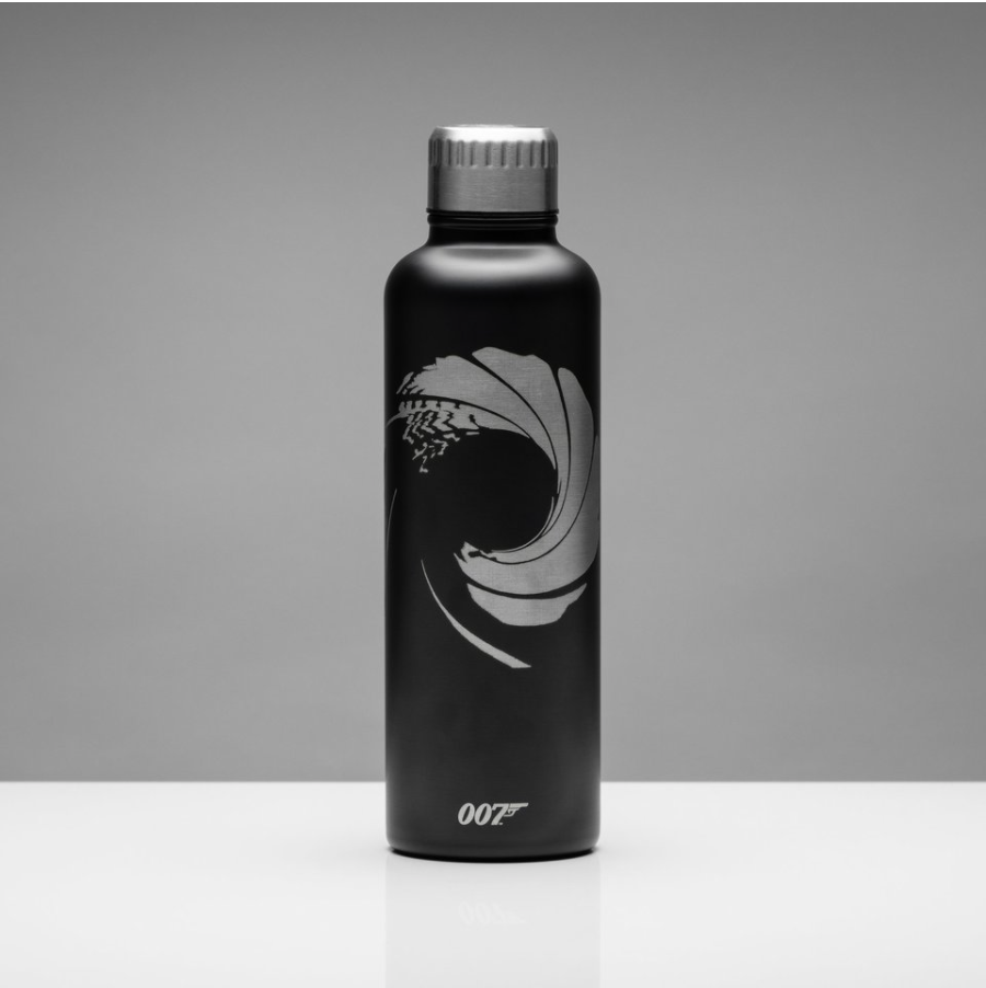Bring out your inner Bond with this sleek tumbler. A stylish and durable double-walled stainless steel drinks bottle. The 17oz capacity bottle has a gloss black finish with a silver gun barrel design and silver screw cap.