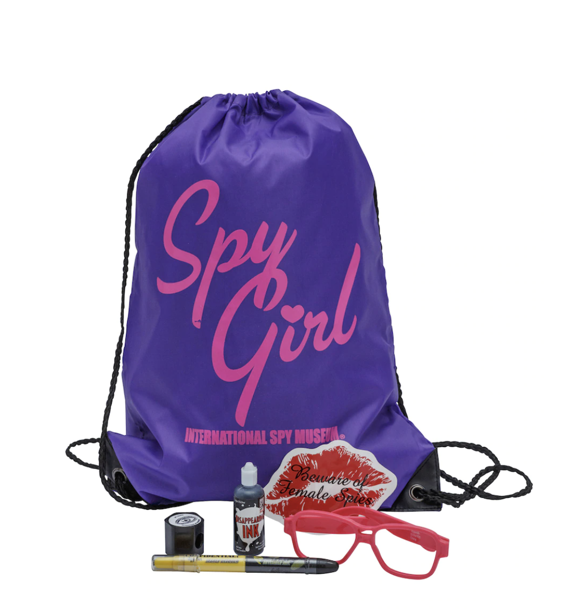 This goodie bag has what you need to start being the coolest Spy Girl ever! It comes with a right angle viewer to see around corners, disappearing ink, pink silly spec glasses to keep your cover, a secret decoder pen, a lip sticker for you to let people know whats yours and last but not least a purple Spy Girl bag to keep your most treasured spy belongings or anything else you want to keep!